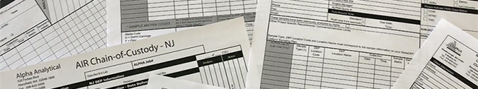 Alpha provides environmental testing Chain of Custody (COC) templates to our clients so they can efficiently document and track all aspects of their project, from routine air analysis, to sample submission and sample container requests. These COC templates can be downloaded, filled out with specific company and contact information and stored on the clients’ computer, or other devices, for ease in setting up future Alpha Analytics sample container order(s) or client projects. The completed COC can be used to place your container order or advanced preparation for your next field sampling event.